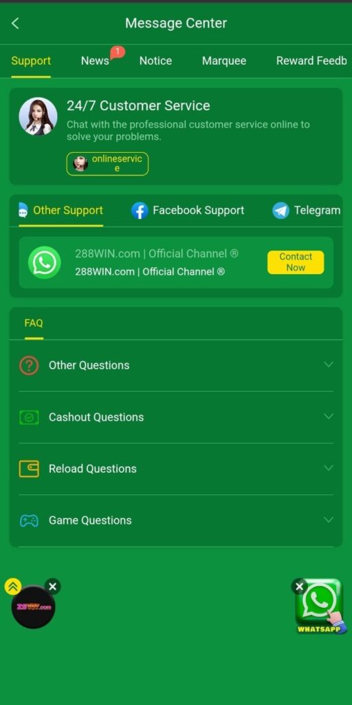 If you face issues like a forgotten password or delayed withdrawal, 288 Win provides a dedicated support center. You can resolve your problems quickly through WhatsApp or email, ensuring fast and reliable assistance within seconds.