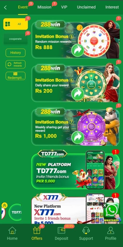 288 Win Pakistan is an Android app offering slots, card games, sports challenges, and rewards. Players can earn by participating in games and withdrawing via local payment methods.