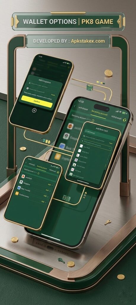 Many users struggle with international payment systems. Therefore, PK8 Game supports Pakistani wallets such as: